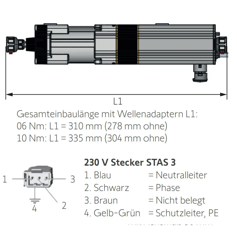 | 24 U/min | U30 = 1244804 N30 = 1244805 | 310 mm (ohne Kupplungen = 278 mm) | |