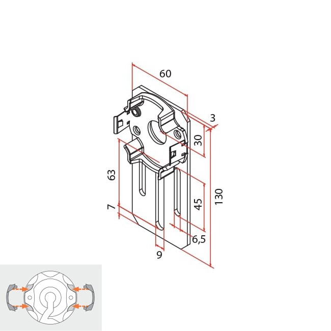 Cherubini Schnellanschluss- Motorlagerplatte 130 x 60 mm mit 3 x Langloch
